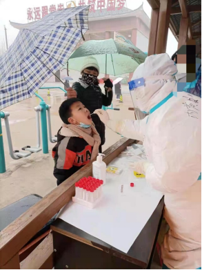 这次疫情也袭击了时广源的家乡杞县。在这个寒风凛凛的冬天,他选择了当一位志愿者。他每天帮助社区工作者们测量外来人员的体温以及核查行程码健康码。每隔几天还要和社区工作者们一起挨家挨户的去上门登记个人信息。