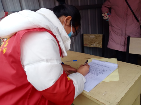 从1月2号开始,她在村口设卡处,身穿志愿者红马甲,在寒风中默默值守站岗,登记劝返外村来往人员与车辆,守护村民的生命安全和健康。和其他志愿者一起,时刻准备着,随时通知做核酸,随时到村部集合。帮住村民扫码,引导村民排队,协助医护人员上门进行核酸采集。不做核酸的时候,每天从早上八点到下午六点在村内进行巡逻,对村民进行劝返,保证村民全部在家,宣传防疫小知识。保障街道空无一人,防止疫情传播。在封村期间,积极充当配送员,帮助村民把蔬菜,日常用品送到家,为每家每户发放中药,让村民即使在家也能吃到新鲜的蔬菜,增强体质对抗新冠病毒。