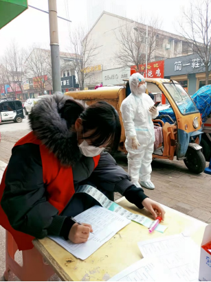 1月3日,刘慧同学参加到河南省南阳市南召县太山庙乡梁沟村志愿服务小组中,配合村干部领导下,带上袖章,戴上口罩,在十字路口等主要道路,进行值守,对村内来往车辆进行登记和盘查,为村里村外人员进行信息登记,并测量体温。此外,在村领导的安排下,她们利用自身所学,走进村民中,为村民发放抗击疫情宣传单,告诫村民,家里如果有从高风险地区回来的家人,一定要如实告知。