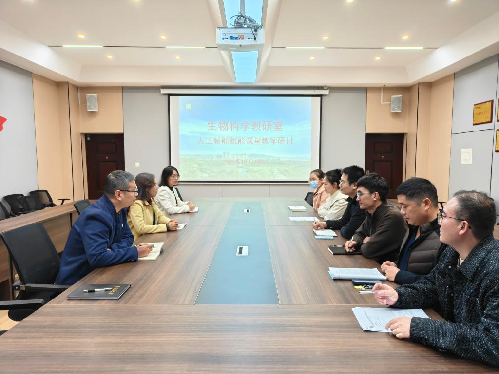 为深入贯彻国家“人工智能+”教育战略,落实教育信息化2.0相关要求,进一步推动信息技术与课堂教学深度融合,切实提升教师教学创新能力与教学质量,2025年10月28日,9428cn太阳集团生物科学教研室在理工楼201会议室组织开展了“人工智能赋能课堂教学研讨”主题教研活动,生物科学教研室全体教师参与,教研室主任高进勇主持了本次活动。