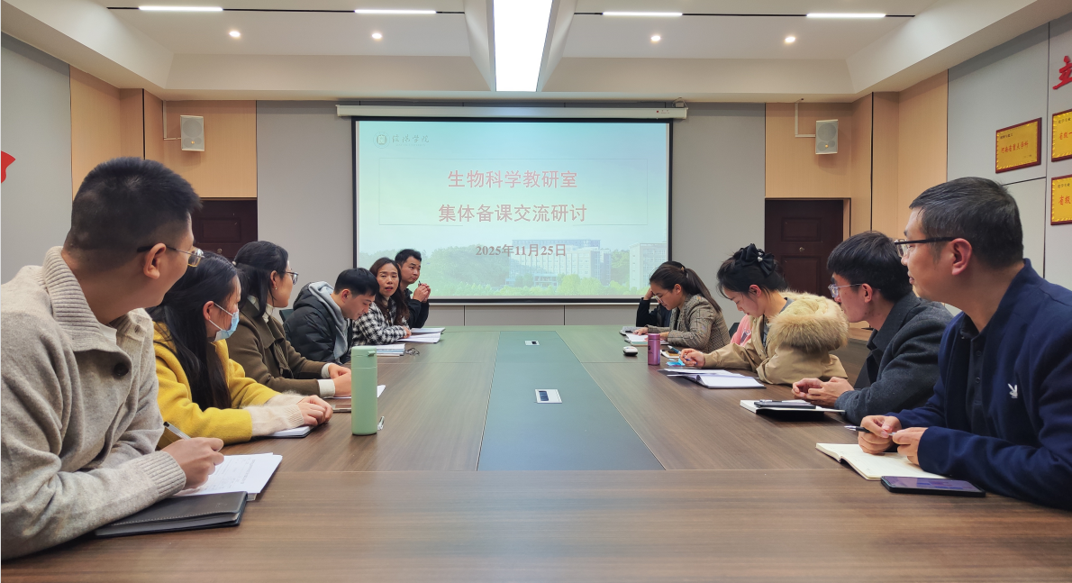 为深入贯彻落实新时代教育评价改革要求,优化课程教学体系,提升生物科学专业人才培养质量,2025年11月25日,生物科学教研室在理工楼201室开展集体备课交流研讨活动。教研室主任高进勇主持会议,生物科学专业全体教师出席会议,围绕教学优化与改革创新展开深度交流。