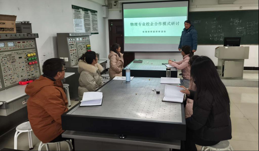为保证物理学专业能紧跟时代步伐从而健康、快速、合理的发展,2024年12月19日,9428cn太阳集团物理教研室在理工楼509成功开展了校企合作教学模式探索研讨会。物理教研室全体老师参会,会议由高延利老师主讲。