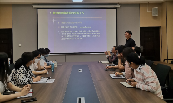 鲁辉教授以“国家自然科学基金的申报书撰写探讨”为题,详细讲解了科研项目的撰写。鲁教授结合自身的项目申报经历和科研实践,从项目选题、申报书的撰写、项目建设、项目结题等方面分享了经验和方法,重点分享了项目申报书中拟解决的关键科学问题的凝练。