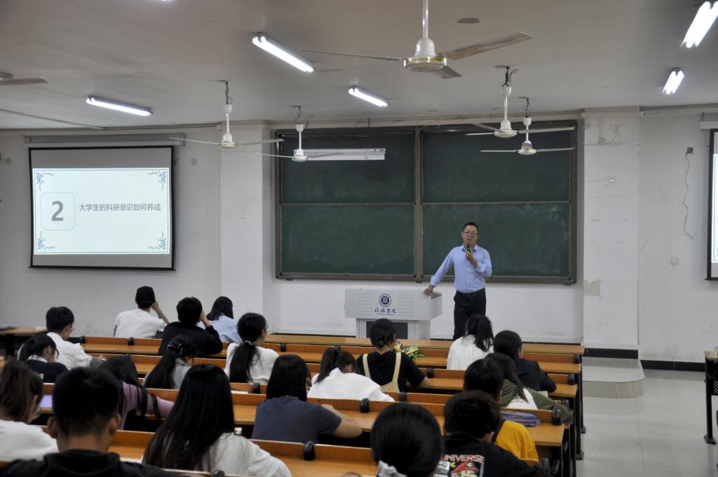 高老师表示,以培养学生具有理想信念、社会责任感、创新精神和实践能力为核心,培养造就高素质专门人才和拔尖创新人才,培养具有创新精神和实践能力的学生是现代大学教育的核心工作。高老师也从自身出发,向学生们讲述了他本人的求学和科研经历,从刚考入硕士,经历迷茫,再到探索阶段和转型阶段。在讲述经历过程中,学生们也都感受到科研的重要性以及严谨的科研态度。高老师鼓励同学们在科研道路上要端正自己的心态,多阅读和跟踪文献以及积极申请科研项目。最后,高老师强调大学专业研究的优势与必要性,尽早培养学生的创新兴趣与意识,扭转学生的惯性思维,使学生尽早步入探索科学和创新的实践轨道。