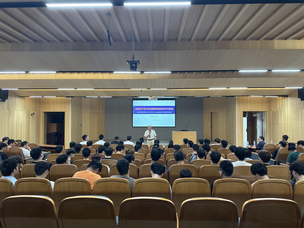 常教授从全面完整理解智能制造、电子智控领域、、智能制造的基础工业软件、设计流程等四个方面给同学们全面解读了机械电子技术和智能制造发展历程,并着重介绍了工业技术创新、数字智能化、绿色化、全球化、服务化的五个核心内涵和系统方案设计,帮助同学们深入了解中国制造业在不同阶段的特点及挑战;在智能制造方面,常教授从“电子智控”与“制造”两个基本概念入手,强调智能制造的核心是“软件定义的工业技术”,又结合他主持和参与的设计项目深入解析了智能制造的本质。常教授拥有几十年机械设计制造的经验,结合其在企业参与的几十项横向项目,极具深度的诠释了机械造物之本和电子智控赋能的精髓。他强调,机械电子技术作为智能制造的核心支撑,正推动制造业向数字化、网络化、智能化方向加速转型。机械电子技术无所不有,无处不在,多注意观察和思考。当代大学生要抓住机遇、打牢基础、学好专业,要塑造好在“学中干、干中学”的品质,深耕专业领域,理实结合,在实践中不断创新。报告内容丰富,数据翔实,案例典型,语言生动。