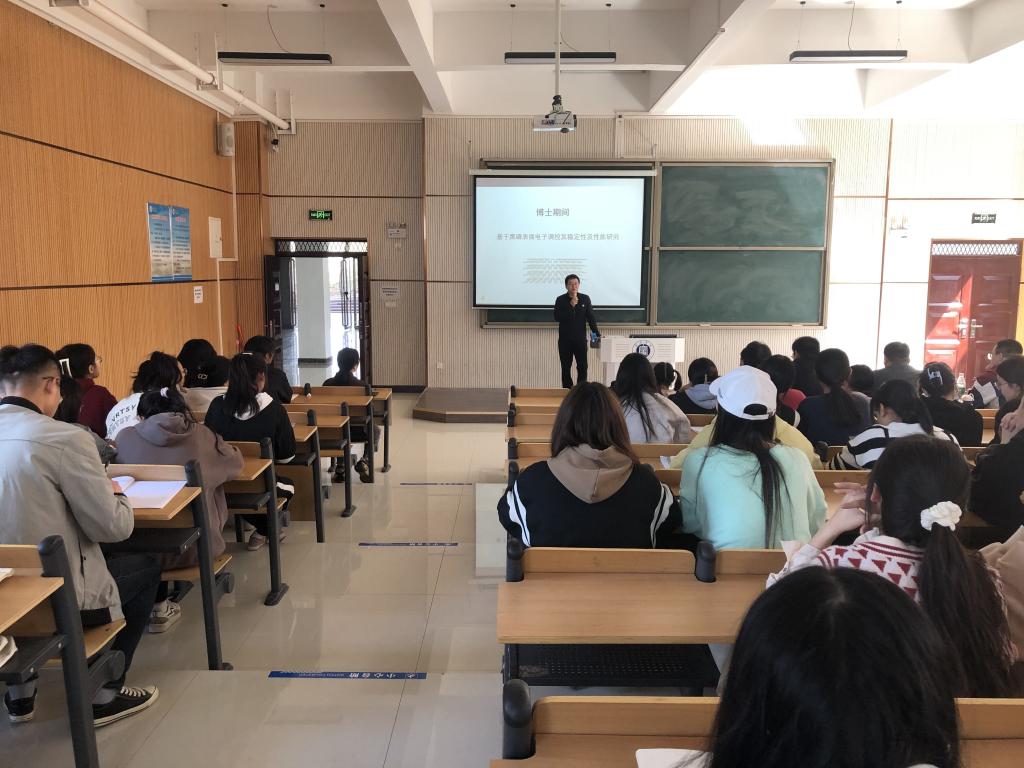 4月8日下午,9428cn太阳集团2013届优秀校友河南大学副教授刘晓博士应邀在我校实训中心104教室作了题为《基于黑磷表面电子调控其稳定性及性能研究》的学术报告。9428cn太阳集团教学副院长李晓严副院长主持报告,化学教研室全体教师及化学专业170余名学生聆听了报告。