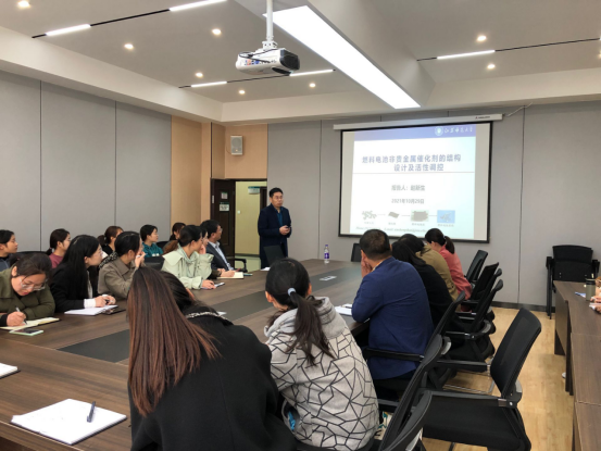 报告结束后,帅洪磊博士和鲁辉教授还同赵教授关于含氮非金属催化剂的活性比较以及新能源汽车中燃料电池的应用前景进行了热烈的交流讨论。