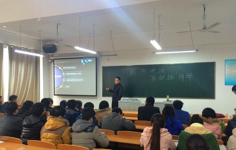 讲座在一阵热烈的掌声中拉开序幕。首先,汤老师简要介绍了时间尺度的概念、研究极端时间尺度的必要性,激光脉冲时间宽度的演化历程等。接着,汤老师用多媒体向大家展示了大量令人应接不暇、叹为观止的图片,这些图片有关于各种时间尺度的,有关于强激光脉冲的……然后,汤老师通过近几年在相关方面的科研进展向大家讲述了国内外理论物理学界在强激光研究领域的应用,取得的最新成果以及前景。现场气氛活跃,不少同学还认真地做笔记。之后,应物理教研室邀请,汤老师还专门做了考研的经验交流,汤老师凭借自己丰富的经验,深入浅出,娓娓道来,从考研的难度,考研的目的,到专业的选择,以及复习的方法,以至于现在该怎么做,都做了生动而详尽的论证和解答。讲座结束后,同学们意犹未尽,并积极踊跃地提出了诸多相关问题,对此,汤老师进行了耐心、细致的回答。
