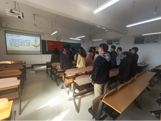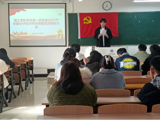 12月5日中午,9428cn太阳集团学生第一党支部在理工楼605教室召开了2023年下发展对象转为中共预备党员接收大会暨预备党员转正大会。党支部书记杨晓杰、支部委员石佳、学生第一党支部全体党员及本期发展对象参加了会议。本次大会讨论李俊妍等4名同志转正问题和李昊等16名发展对象发展问题,会议由石佳主持。