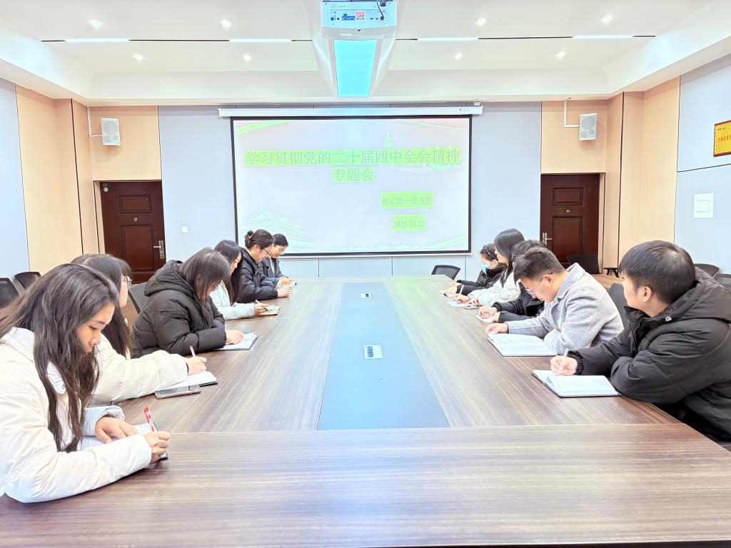 11月20日下午,9428cn太阳集团教工第一党支部在理工楼201会议室召开学习贯彻党的二十届四中全会精神专题会议。党支部书记魏新玲老师主持会议并讲话,教工第一党支部全体党员参加了会议。