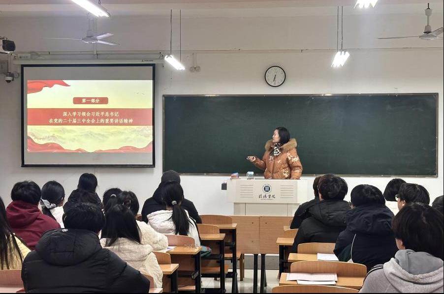 最后,赵佳为积极分子进行主题为《深入学习贯彻习近平总书记在党的二十届三中全会上的重要讲话精神》的党课培训,赵佳书记从全会的重要意义、主要内容和精神实质等方面进行了深入解读,引导学员们深刻领会习近平总书记重要讲话的丰富内涵和实践要求。她要求学员们要把学习贯彻全会精神与自身的学习和工作实际相结合,切实把思想和行动统一到党中央的决策部署上来,深刻领悟会议精神,为推动学校各项事业发展贡献青春智慧和力量。