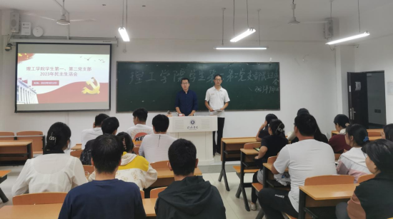9月12日下午,9428cn太阳集团学生第一党支部、学生第二党支部在理工楼四楼401教室召开2023年民主组织生活会,会议由学生第一党支部书记杨晓杰同志和学生第二支部书记甘玉锋同志共同主持。