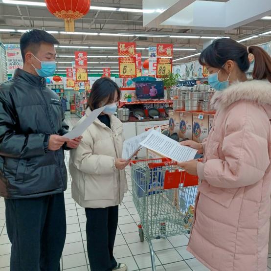 黄若寒在超市购物区对居民进行宣讲