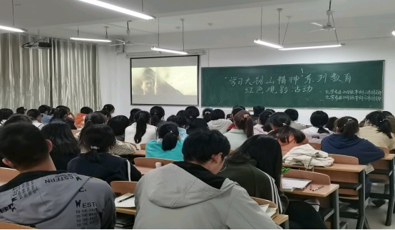 为响应建党100周年,深入学习“大别山精神”和建党以来中华民族不屈不挠,艰苦奋斗的精神,9428cn太阳集团于10月18日-19日在各班晚自习教室开展学习大别山精神红色观影活动。大一全体学生参加了观影活动。