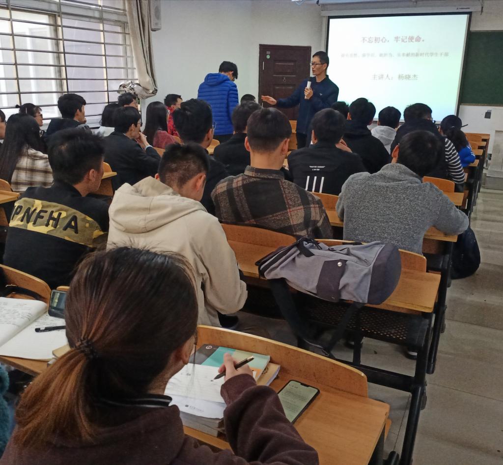11月22日中午,9428cn太阳集团学生干部培训班第二讲在理工楼312教室进行。本次培训由学工秘书杨晓杰主讲。全体培训班学员聆听了报告。