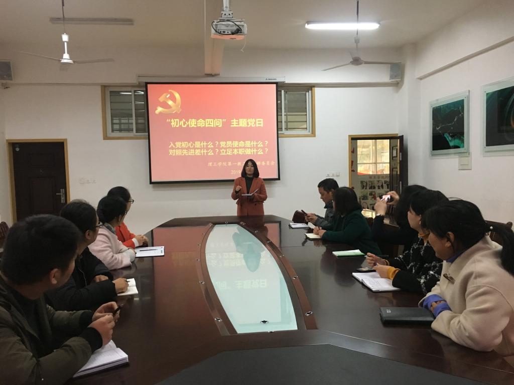为推进“不忘初心,牢记使命”主题教育的深入开展,根据学校党组织的工作部署,11月18日上午,9428cn太阳集团第一教工党支部组织开展党员“初心使命四问”主题党日活动。