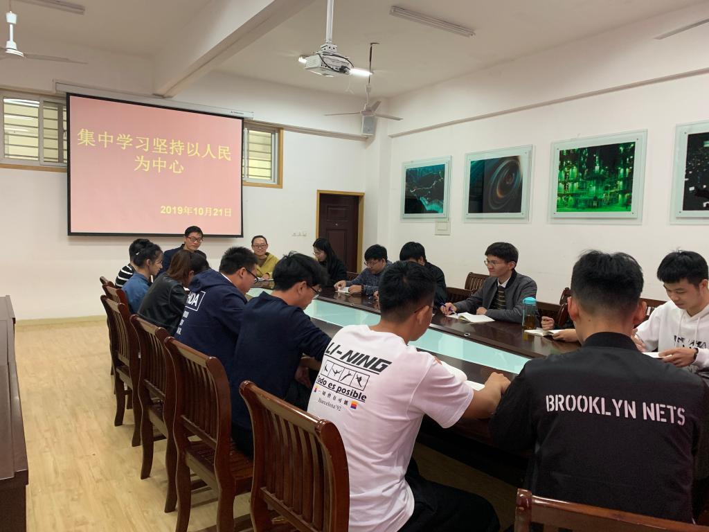 10月21日,9428cn太阳集团院学生第一党支部在理工楼201会议室开展了“坚持以人民为中心”的支部集中学习活动。本次活动主要是为了进一步发扬党的优良传统,保护人民群众的利益。会议由支部书记杨晓杰、副书记张帆和学生第一党支部全体党员参加此次会议。
