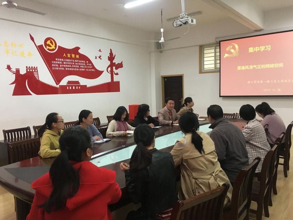10月28日,9428cn太阳集团第一教工党支部全体党员集中学习了《习近平新时代中国特色社会主义思想学习纲要》。围绕“营造风清气正的网络空间”进行学习研讨。