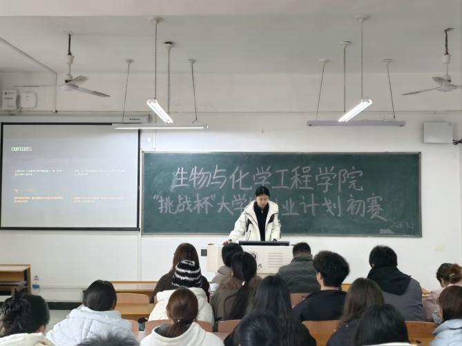 为进一步激发学生创新精神、提升创业实践能力,营造浓厚的校园科创氛围,3月9日,生物与化学工程学院举办2026年“挑战杯”大学生创业计划竞赛学院初赛。学院党总支书记赵佳、教学副院长李晓严、各教研室主任、全体辅导员以及竞赛指导老师出席此次竞赛并担任评委,各参赛项目团队学生负责人参与路演。