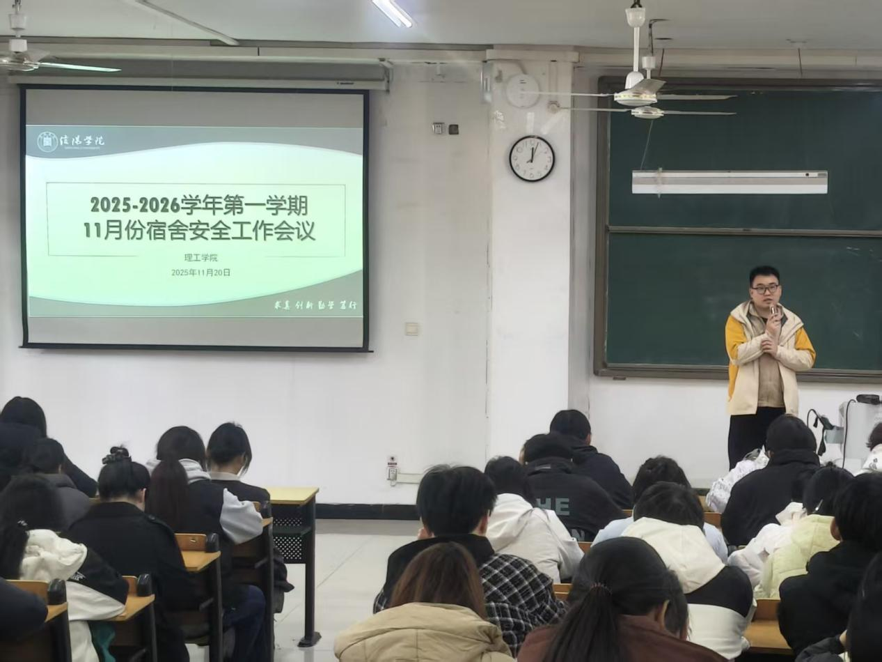 为进一步夯实宿舍管理基础,筑牢校园安全屏障,11月20日中午,9428cn太阳集团在人文楼108开展了2025-2026学年第一学期11月份宿舍安全会议。此次会议23级普本和24级普本所有宿舍长参会并认真学习,由宿舍管理负责人杨康强老师进行讲解。