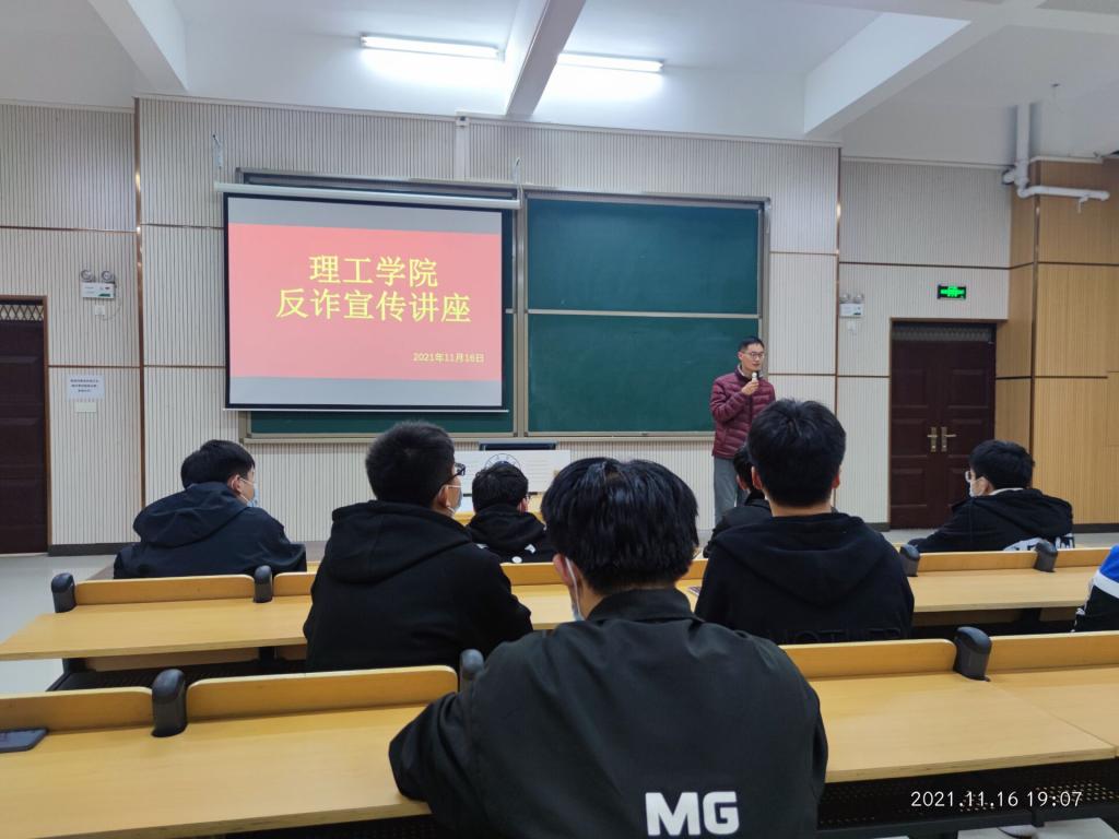 11月15日,9428cn太阳集团在实训中心104开展反诈骗宣讲活动。辅导员胡文亚、太阳集团反诈宣传员方飞洋,2021级生物科学、化学、机电专业的同学参加此次活动。