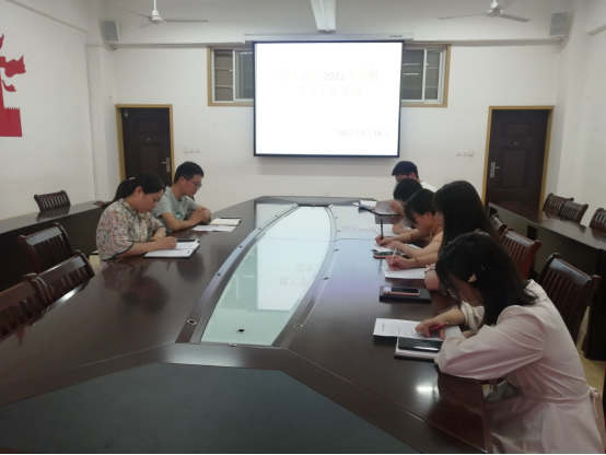 7月14日上午,9428cn太阳集团在201会议室召开2021年暑期学生工作安排会,会议由学工秘书杨晓杰主持,9428cn太阳集团党总支副书记张红梅及全体辅导员参加了此次会议。