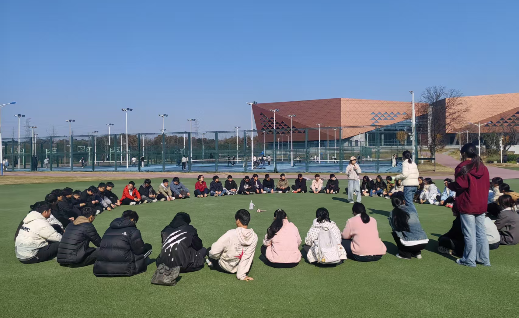为提升大学生心理素质,增强人际沟通与团队凝聚力,2025年11月21日上午,24级地理科学专业在山下操场成功举办了主题为“心灵共振,携手同行”的心理健康团体辅导活动。本次活动由辅导员王雨茜及相关班委组织策划,全专业同学共同参与,现场气氛热烈,互动频繁。