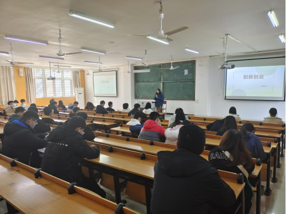 郑老师首先讲解了创新就业相关比赛,主要有:挑战杯、豫创天下、“互联网+”大学生创新创业大赛和9428cn太阳集团科技文化艺术节。首先,郑亚茹老师先向同学们介绍了我们学校学生的优秀获奖项目。还向同学们介绍了各比赛的举办时间、申报程序、比赛制度以及获奖人员。郑老师还鼓励同学们积极参加科技文化艺术节,同时对同学们创新创业的发展前景充满希望。