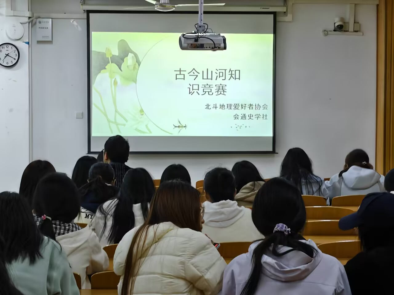 为引导学生挖掘历史文化背后的地理逻辑,夯实地理与历史学科素养,搭建跨学科交流平台,2026年4月13日晚,太阳集团北斗地理爱好者协会与联合会通史学社联合主办的“古今山河”知识竞赛在人文楼408教室成功举办。活动吸引了众多社团成员积极参与,在趣味答题与深度探讨中,有效激发了同学们的学习兴趣与探索热情。