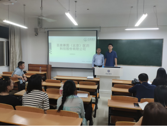 百奥赛图公司马老师首先通过视频和PPT的形式向同学们展示了百奥赛图公司的体系结构,企业文化。然后,马老师给同学们介绍招聘岗位、岗位职责、薪资待遇、福利等,同学们根据自己要求进行提问,马老师针对学生提出的问题一一做解答。
