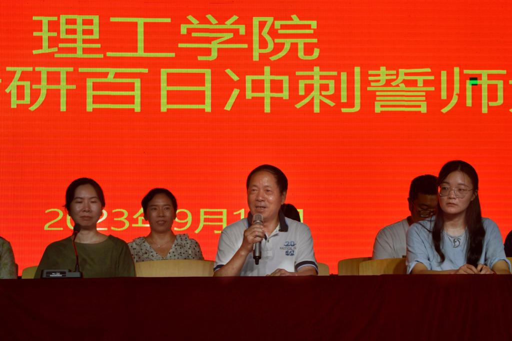 为鼓舞2024届考研学子士气,再创考研佳绩,9月19日下午,9428cn太阳集团在大学生活动中心举行2024届毕业生考研百日冲刺誓师大会。院长肖生发、教学副院长李晓严、各专业考研指导教师、各教研室主任、全体辅导员、2024届全体考研学生、2021级拟考研学生参加了本次会议。会议由李晓严主持。