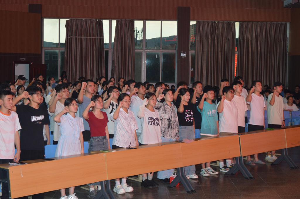 第十六届学生会主席李志航对考研进行了领誓,全体2024届考研学子起立宣誓。