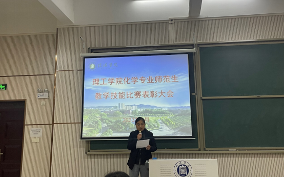 为表彰先进,树立典型,5月22日,化学教研室在实训中心104隆重举行了第三届师范生教学技能比赛颁奖仪式。该仪式由马艳梅老师主持,化学教研室全体教师及2020级化学专业学生参加。