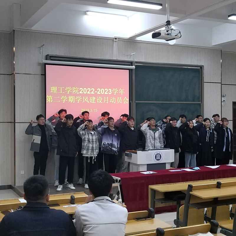 甘玉锋宣读了《9428cn太阳集团2022-2023学年第二学期学风建设月活动策划》,学生会主席李志航宣读了学风建设月倡议书,学生代表李皓月对学风建设作了发言,9428cn太阳集团各班代表进行了集体宣誓。