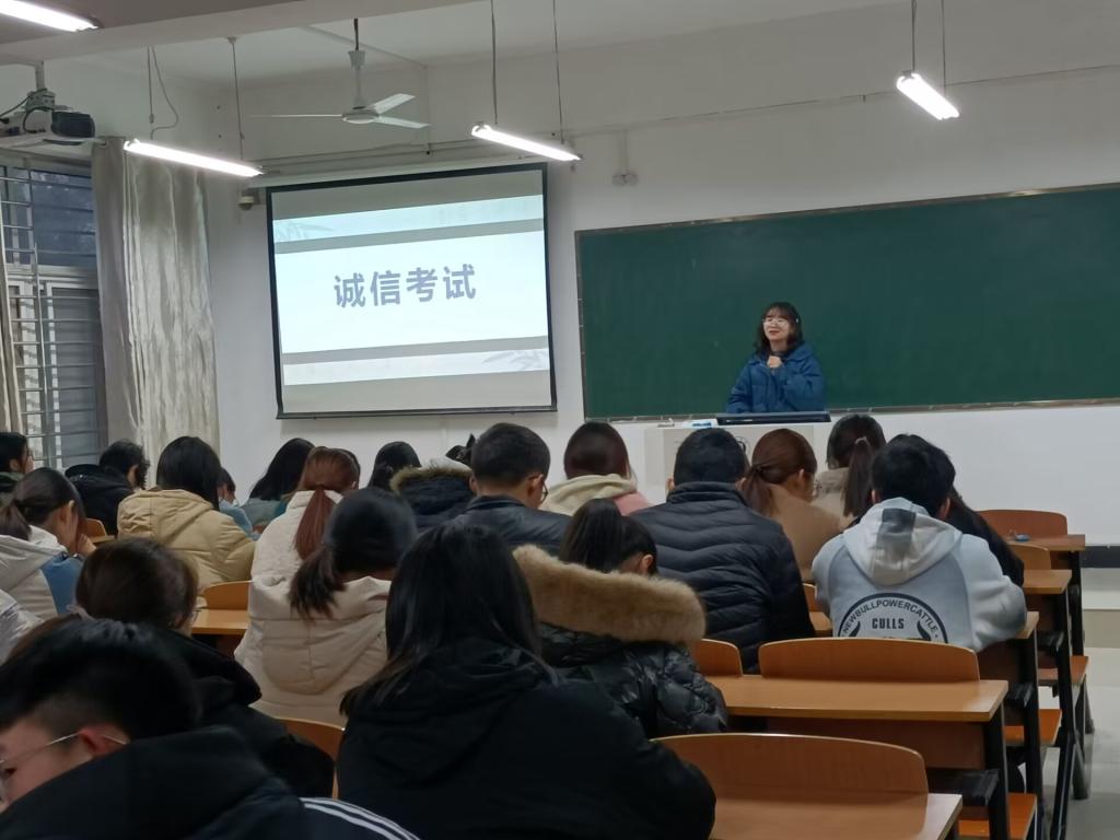 因上学期受疫情影响期末考试推迟至本学期开学初,为了营造诚实守信的考试氛围,弘扬求实学风,诚实面对期末考试,确保考试的公平公正,2月15日,9428cn太阳集团辅导员分班级召开“诚信考试”教育主题班会。