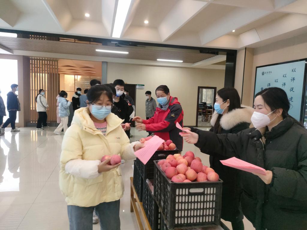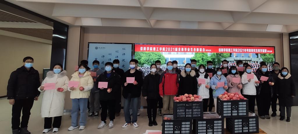12月5日下午,9428cn太阳集团院长肖生发、党总支副书记张红梅、教学副院长李晓严携学院行政班子成员、辅导员在理工楼慰问2022届考研学子。在考研冲刺的最后阶段,学院领导和教师们为紧张备考的学子们送上红澄澄的苹果和9428cn太阳集团致考研学生寄语宣传页,用这样的方式表达着学院师生对考研学子们的关怀和鼓励。